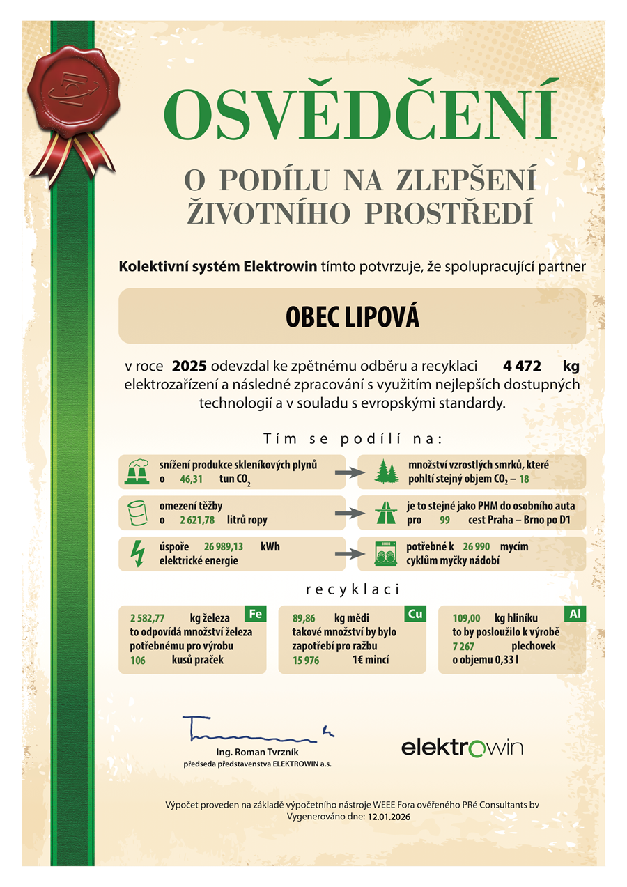 Osvědčení o podílu na zlepšení životního prostředí za rok 2025