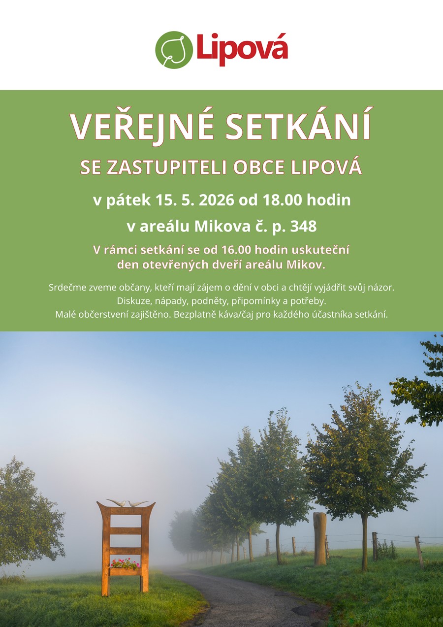 Veřejné setkání se zastupiteli obce Lipová 5/2026